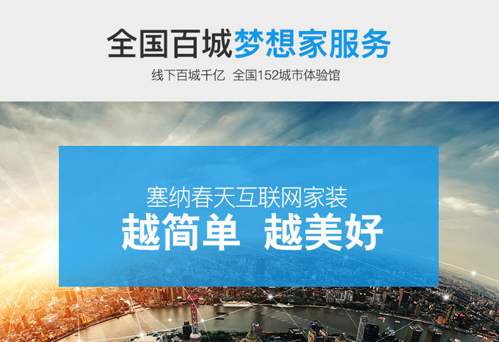 塞纳春天互联网家拆,目前公司曾经正在、商洛、武汉、杭州、南京、长沙等全国近60个城市开设整拆体验馆!并以电商大数据为支撑,并成为互联网家拆行业第一品牌。施工由塞纳春天的财产工人施行,是实实正在正在的惠平易近拆修。你们只担任等候“的办事,工场至客户完满连系,同一办理、同一培训、同一施工,将家拆建材的线上至线下,博得了消费者的承认。20打邻接原产地的出产厂区为后援?